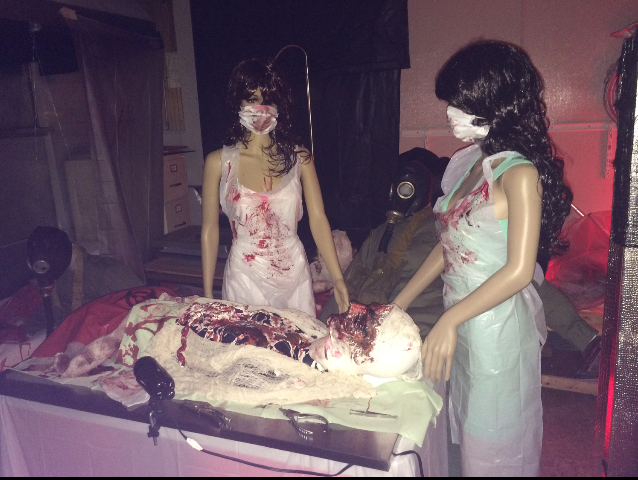 To enhance the effect, I incorporated mannequins dressed as nurses—an unsettling nod to a sinister medical setting. Their vintage gas masks added a layer of historical dread, making the scene even more haunting.